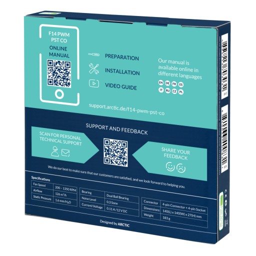 Wentylator Rama wentylatora: Standard Typ kontroli: PST Złącze: 4-stykowe złącze + 4-stykowe gniazdo Łożysko wentylatora: Podwójne łożysko kulkowe