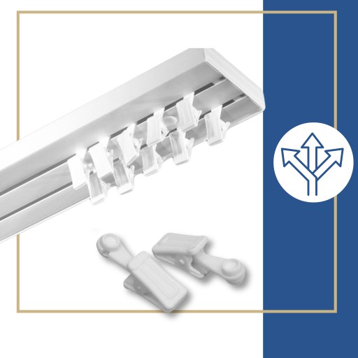 ✔️ MOŻLIWOŚĆ ŁĄCZENIA - dzięki zastosowaniu niewidocznych łączników istnieje możliwość dowolnego łączenia szyn bez ograniczeń, płynnego przesuwania zasłon firan