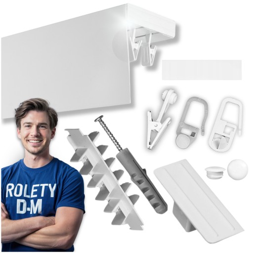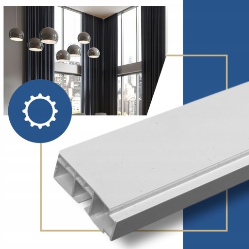 - 2 torowa szyna sufitowa z osłoną 9 cm, koloru białego zgodna z zamówioną długością.