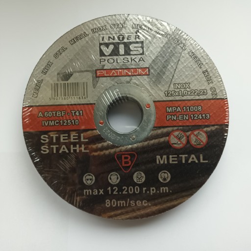 - rodzaj tarczy - płaskazastosowanie - cięcie twardej stali węglowej i blachy kwasowej jak i zwykłej