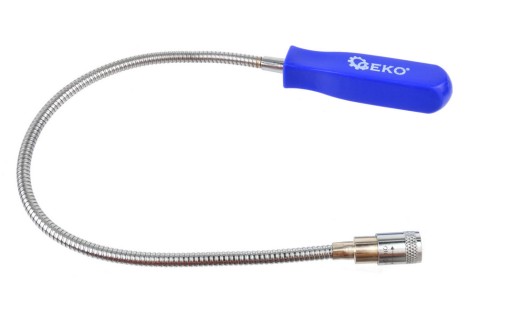 Chwytak magnetyczny elastyczny LED 57cm Proste i skuteczne narzędzie z diodą LED, niezbędne w każdym warsztacie czy garażu. Gdy coś metalowego (wkręt, zawleczka itd.) wpadnie w trudno dostępne miejsce chwytak magnetyczny LED w kilka chwil wybawi Cię z kłopotu. Część giętką chwytaka można dowolnie kształtować, dioda LED dodatkowo oświetla trudno dostępne miejsca co znacznie ułatwia dostęp do zagubionych przedmiotów. Do podnoszenia, wyciągania rzeczy z trudno dostępnych miejsc np: z rur odpływowych, zza szafek, z komory silnika itp. Długość całkowita: 57cm Wyposażony w diodę LED Średnica magnesu: 17mm