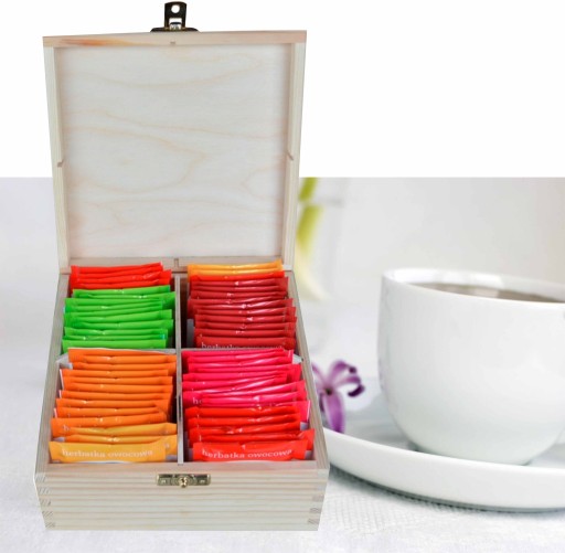 CUDOWNE, DREWNIANE PUDEŁKO NA HERBATĘ Z 4 PRZEGRÓDKAMI!