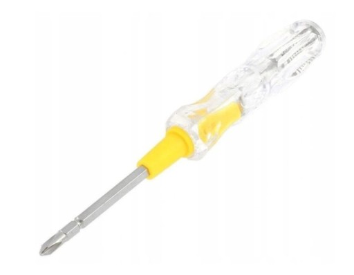 Tester napięcia posiada wymienne końcówki wykonane z aluminium. Wymiana końcówki polega na wyciągnięciu plastikowego elementu z zatrzasku i odwrócenie go. Tym sposobem zawsze przy sobie mamy śrubokręt płaski i gwiazdkowy.Długość 130mm.