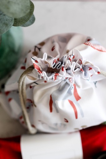 - worek 100% bawełniany w zimowe koniki, który pomieści wszelkie drobiazgi, również uszyty przez nas samych