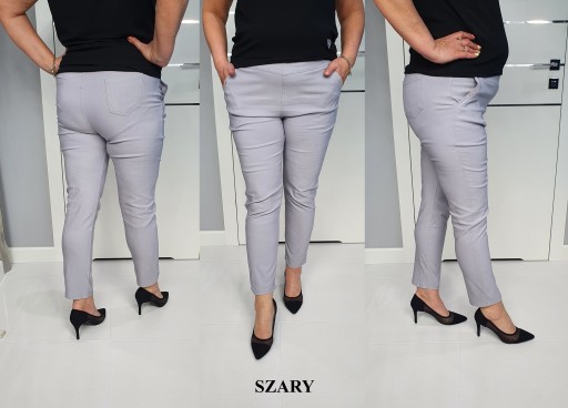 Gładkie damskie spodnie wykonane z elastycznego materiału, bardzo wygodne w noszeniu. Spodnie dopasowane do sylwetki, z przodu i z tyłu dwie wsuwane praktyczne kieszenie . W pasie guma, która doskonale kryje niedoskonałości. Nogawki lekko zwężane.