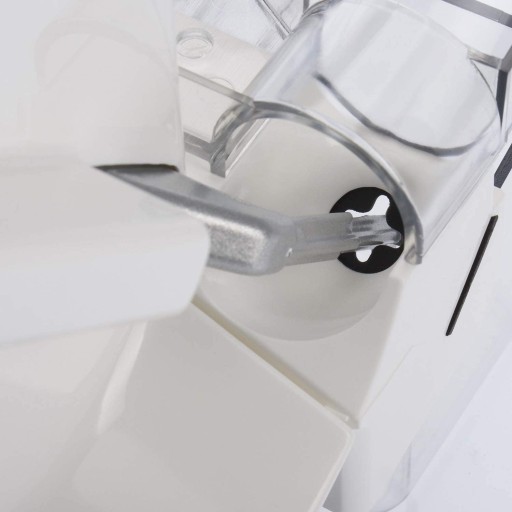Profesjonalna dwustronna drylownica bardzo ułatwi przygotowanie owoców do dalszej obróbki w kuchni. Z jednej strony znajduje się miejsce do drylowania wiśni lub czereśni, a z drugiej wyjmuje się pestki z większych owoców takich jak śliwki lub morele. Drylownica jest bardzo wydajna ponieważ potrafi przerobić aż 20 kg owoców na godzinę. Taka wydajność jest możliwa dzięki temu że jednocześnie drylowane są dwa owoce. Posiada duży pojemnik na pestki oraz zabezpieczenie przed chlapaniem. Gdy chcemy drylować większe owoce np. śliwki to przekładamy pojemnik na pestki na drugą stronę Podajnik do owoców ułatwia i przyspiesza pracę. Powoduje on, że owoce same wpadają na miejsce drylowania. Drylownica wykonana jest z trwałego tworzywa SAN (wytrzymałe tworzy sztuczne), wysokociśnieniowy odlew z powlekanego aluminium (dwa noże do drylowania wiśni) i stali nierdzewnej nóż do śliwek).