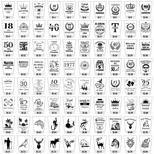- numer wybranego wzoru, ewentualnie imię i datę (jeśli występuje w danym wzorze) np. U-13, SZ-13