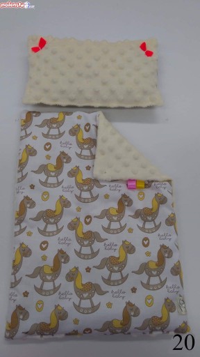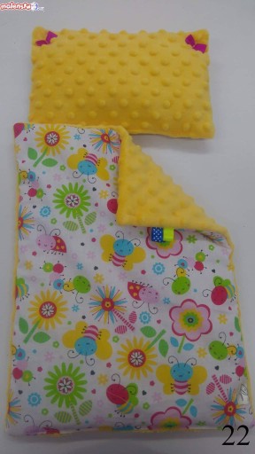 Zestaw pościeli jest dwustronny - zarówno kołderka, materacyk, jak i poduszka, wypełnione są antyalergiczną, puszystą włókniną.