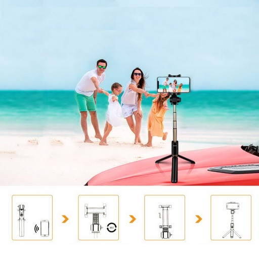 Wiz 4 W-10 Bluetooth Selfie Stick Kijek Do Zdjęć + Statyw Tripod (Black)
