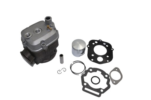 Wykonany z żeliwa, który można wielokrotnie regenerować. Modułowa, dzielona głowica zwiększa skuteczność chłodzenia, a tym samym zapewnia ponadprzeciętną żywotność przy dwukrotnie większej mocy. Tłok nie puchnie w trakcie nabierania temperatury. Odpowiedni kształt oraz wygładzone kanały zapewniają optymalny przepływ mieszanki. Idealny zestaw dla osób szukających cylindra jako część zamienna lub po prostu chcących znacząco zwiększyć moc swojego pojazdu. Montaż nie wymaga jakichkolwiek przeróbek, a w komplecie znajdują się wszystkie elementy niezbędne do montażu.