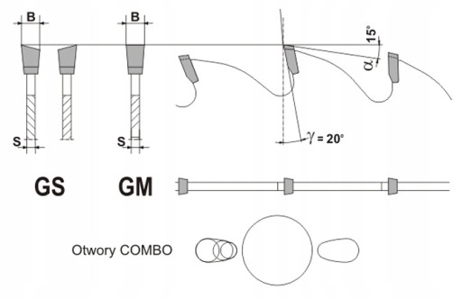 - piły z uzębieniem GS zalecane są szczególnie do cięcia drewna suchego i/lub twardego