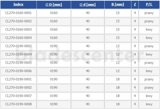 - Średnica freza (∅ D [mm]): 160