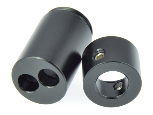 Dwuczęściowy splitter na kabel wykonany z anodowanego aluminium.