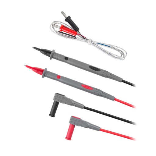 - Akcesoria: Bateria, przewody pomiarowe, krokodylki, krótkie przewody z krokodylkami, sonda pomiaru temperatury, kabel USB, etui