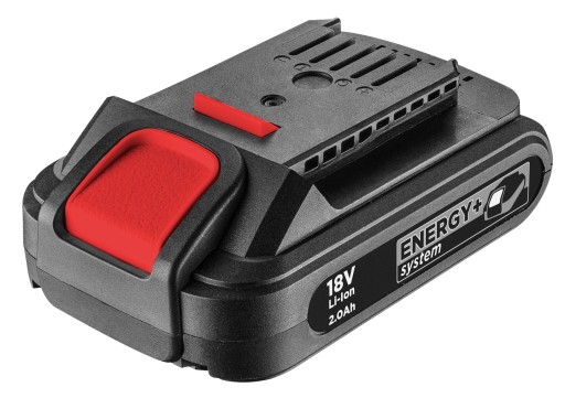Akumulator GRAPHITE Energy+ 18V, Li-Ion o pojemności 2.0Ah. Z możliwością doładowywania bez ryzyka utraty pojemności. Wyposażony we wskaźnik naładowania oraz elektroniczny system kontroli temperatury i przepływu prądu podczas ładowania i rozładowywania.