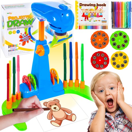 Idealna propozycja dla malucha lubiącego malować oraz rysować. Tablica z rzutnikiem razem z 32 wzorami do wyświetlania, zainteresuje każdego małego artystę.