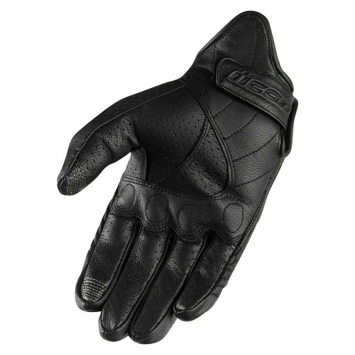 Rękawice ICON są niezwykle lekkie i wygodne. Największą ich zaletą dzięki specjalnej powłoce jest możliwość obsługi telefonu palcem wskazującym. Rękawiczki zapinane są na rzep dzięki czemu ich zakładanie jest szybkie i wygodne. Idealnie dopasowują się do kształtu dłoni. Rękawice posiadają eleganckie osłony kostek i kostek palców. Wykonane są ze skóry. Starannie wykonane poszycia nie uwierają i nie przeszkadzają podczas jazdy. Można ich używać zarówno do jazdy na motocyklu jak również do biegania, chodzenia po górach, jazdy konnej, strzelectwa czy innych zajęć na świeżym powietrzu.