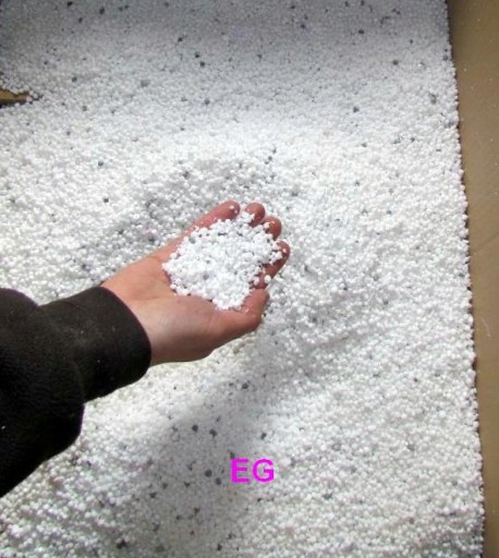 Efekt jaki uzyskujemy z mielenia czystego styropianu pokazuje zdjęcie obok- kuleczki o regularnym kształcie.