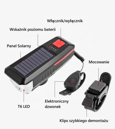 Dodatkowo, lampka przód posiada elektroniczny dzwonek o mocy 120 db ( píęć rodzajów sygnału , zmiana przez długie naciśnięcie )