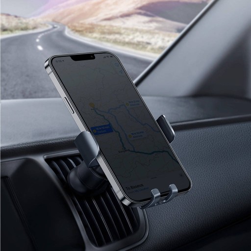 Wysokiej jakości uchwyt od marki Baseus z serii Metal Age II Gravity wykonany z poliwęglanu, aluminium i ABS, pozwala na szybkie włożenie i wyłożenie urządzenia z ramion uchwytu.