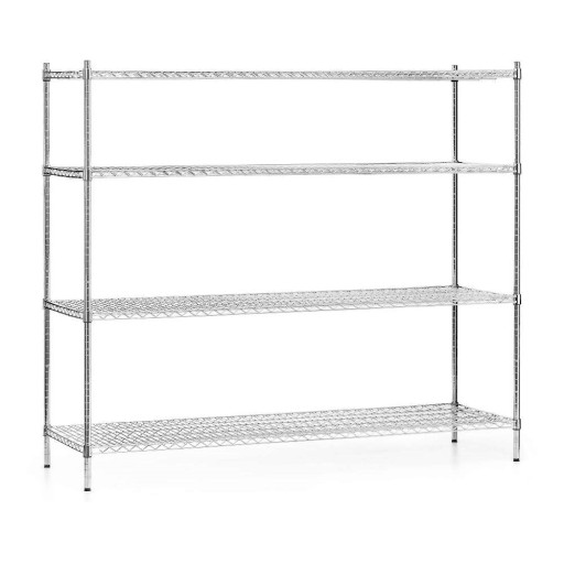Regał 4-półkowy ze stali chromowanej o wymiarach 182x45,5x180 cm. Dostarczany w paczce do samodzielnego montażu.