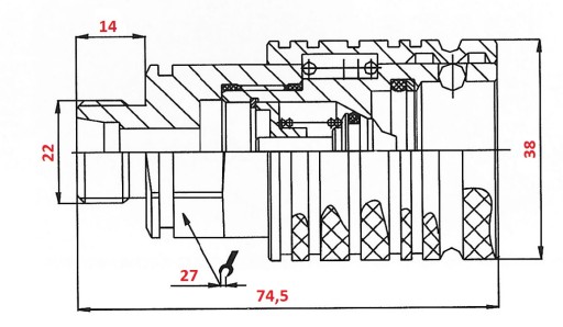 GNIAZDO GWINT ZEW.-M22X1,5 15L EURO SZYBKOZŁĄCZE PUSH PULL ISO-A 12,5
