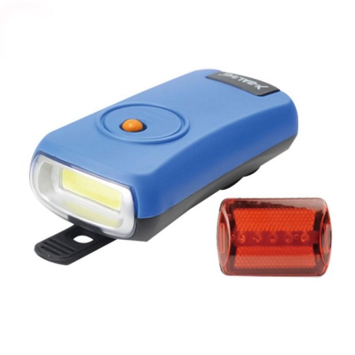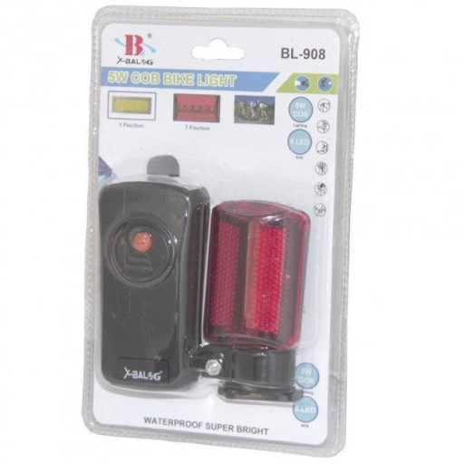 Przednia lampa jest wyposażona w diodę 5W COB, charakteryzującą się bardzo mocnym światłem.Tylne światło wyposażone jest w 5 diod LED świecących czerwonym światłem w 7 trybach do wyboru.