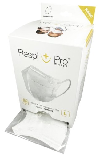 - RespiPro® White to certyfikowana półmaska anty-COVID-19 (rozporządzenie UE RFU 02.075 wersja 2)