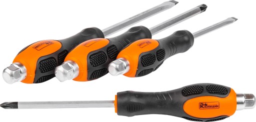 ✔ Konstrukcja wkrętaków umożliwia bezpieczne posiłkowanie się młotkiem podczas pracy