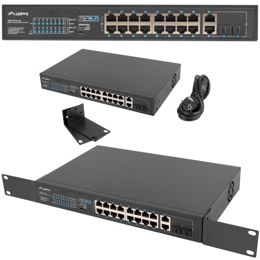 SWITCH LANBERG 16X 100MB POE+/2X COMBO NIEZARZĄDZALNY RACK 19" GIGABIT ETHERNET 150W