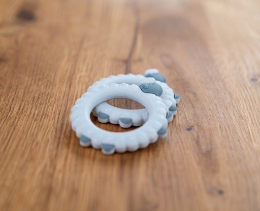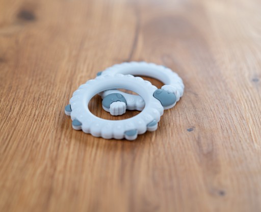 Wykonany z bezpiecznego silikonu gryzak w kształcie owieczki będzie wspaniałym prezentem dla ząbkującego bobasa. Zróżnicowane faktury masują dziąsła ząbkującego dziecka, przynosząc mu ulgę, a wygodny otwór ułatwia małym rączkom chwytanie zabawki.