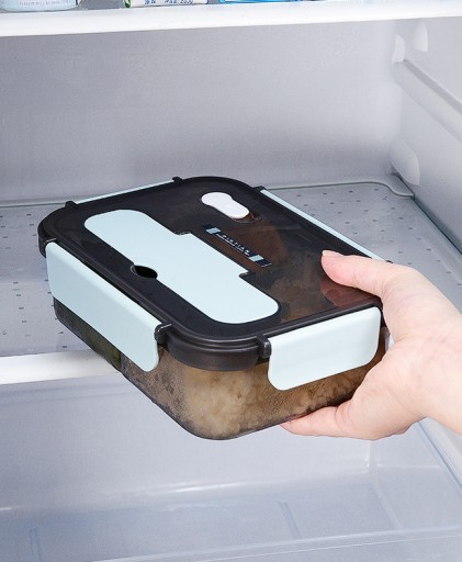 Jest przenośny i bardzo praktyczny. Przy pojemniku są sztućce. Pojemnik jest bardzo lekki. Duża pojemność razem - 1,1 litra. Materiał spożywczy bez BPA. Odporny na temperaturę od -20 stopni celsjusza do ~ 120 stopni celsjusza.