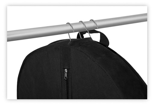 - TRWAŁE RĄCZKI U GÓRY I NA DOLE POKROWCA POZWALAJĄCE NA WYGODNE TRANSPORTOWANIE ZABEZPIECZONEJ ODZIEŻY.