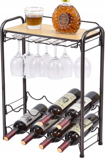 Unikalna konstrukcja 3 w 1 doskonale łączy funkcję stojaka na wino i uchwytu na kieliszki do wina i blatu. Może pomieścić do 8 standardowych butelek wina i 8 kieliszków.