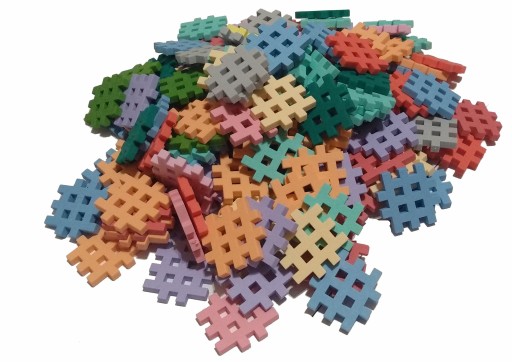Zestaw składa się z 500 kolorowych elementów w różnych kształtach.