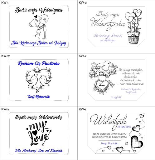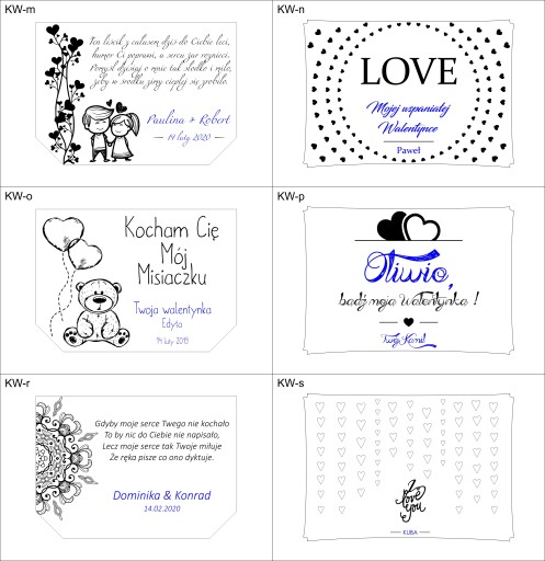 Przy finalizacji zakupu prosimy podać w wiadomości dla sprzedającego numer projektu oraz własny tekst (imiona, data itd.) zaznaczony na szablonie niebieską czcionką.