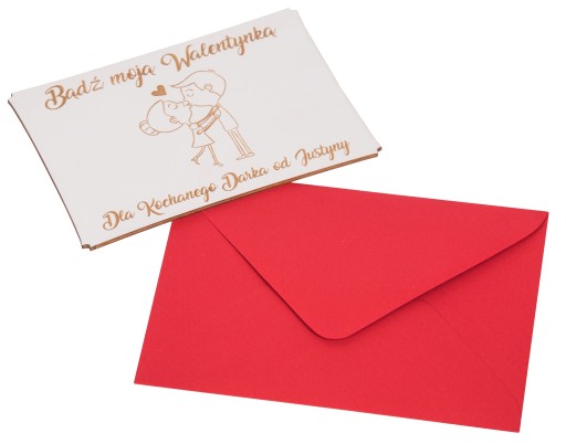 Każdą kartkę wkładamy do pięknej, czerwonej koperty ozdobionej dodatkowo sznureczkiem. Dostajesz od nas gotowy, oryginalny i niepowtarzalny prezent dla swojej drugiej połówki!