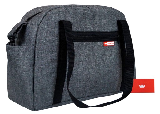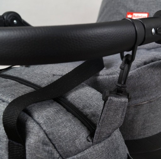 Nowoczesna, pojemna, praktyczna, solidnie wykonana torba, niezastąpiona podczas codziennych spacerów i w podróży. Wykonana z atestowanych, impregnowanych (wodoodpornych) tkanin poliestrowych typu len stosowanych do produkcji wózków dziecięcych. Wewnątrz znajduje się czarna nieprzemakalna podszewka, cała torba usztywniona jest pianką PUR. Torbę stanowi duża komora główna zapinana na zamek oraz 5 kieszeni. Jedna kieszeń wewnątrz torby, na zewnątrz: dwie boczne kieszenie na butelki, kieszeń z tyłu oraz z przodu kieszeń zapinana na zamek na drobne akcesoria i dokumenty. Torba wyposażona jest w długi pasek do noszenia na ramieniu oraz uszy do noszenia na ramieniu lub w ręku. Torba posiada klipsy do montażu na wózku wyposażonym w haczyki oraz komplet dodatkowych uchwytów zapinanych na rzep do montażu na każdym innym wózku który nie jest wyposażony w haczyki do zawieszenia torby.
