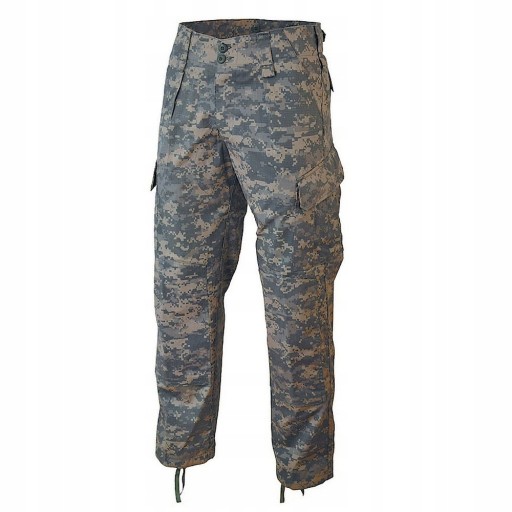 Spodnie bojówki wykonane z tkaniny policotton ripstop (poliester oraz bawełna), która charakteryzuje się zwiększoną wytrzymałością na przetarcia i rozdarcia.