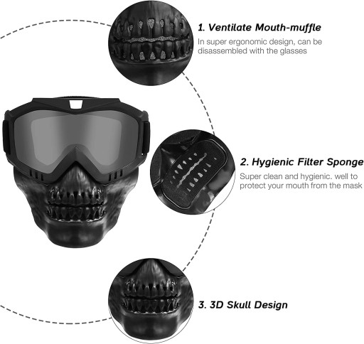Muti-funkcjonalna: maska motocyklowa może być wyposażona w kask Harleya, kask motocrossowy lub pół kask, idealnie pasuje do odpinanych gogli motocyklowych 3/4 otwartej twarzy, nadaje się do aktywności na świeżym powietrzu, ATV, jazdy konnej, wspinaczki. Filtracja otworów oddechowych, kurz , piasek, maksymalizuj oddychaj płynnie. Z otworami po obu stronach, aby zapewnić wewnętrzną cyrkulację powietrza.