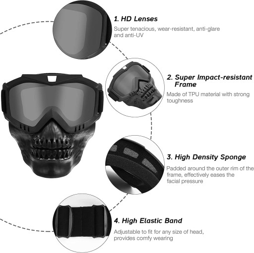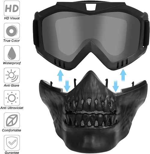 Wysoka jakość i ochrona: odpinane gogle motocyklowe z czaszką są wykonane z wysokiej jakości z soczewką PC i ramką z TPU, z funkcjami odpornymi na zarysowania, wiatroszczelnymi, pyłoszczelnymi, wstrząsoodpornymi, ochroną przed promieniowaniem UV i wrażeniami wizualnymi HD.
