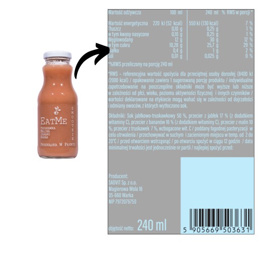 6xSmoothie EatMe Różowe 240ml