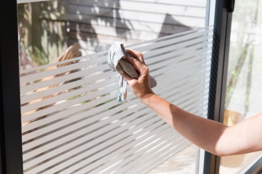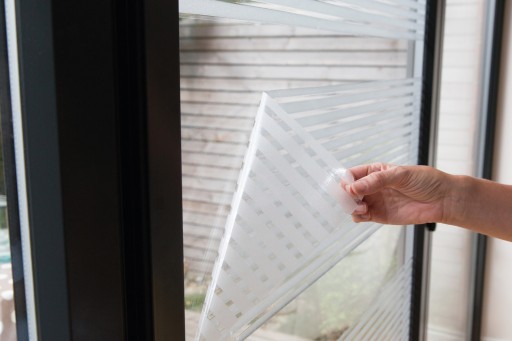 Usuń papier ochronny z nieprzezroczystej folii okiennej i przyłóż folię do szyby, pamiętając o zachowaniu odpowiedniej odległości od uszczelek okiennych.