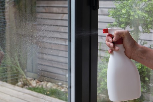 Teraz należy przygotować okno: dokładnie oczyść szklaną powierzchnię, aby podczas oklejania była całkowicie wolna od kurzu i wszelkich zanieczyszczeń. Następnie obficie spryskaj powierzchnię szyby wodą, nie pozostawiając suchych miejsc.