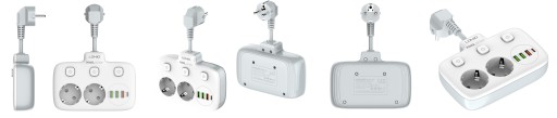 - Dwa gniazda sieciowe z uziemieniem i dodatkowym zabezpieczeniem przed wsunięciem do środka małych przedmiotów