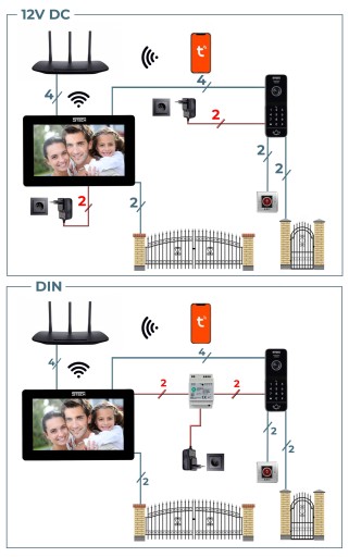 ✔️przez 4 żyły od przewodu typu skrętka i zasilacz zbiorczy DIN