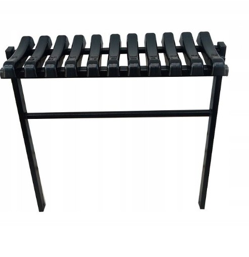 Wykonana z grubego stalowego profilu zakończonego zaślepkami oraz twardego i mocnego plastiku na siedzisku.