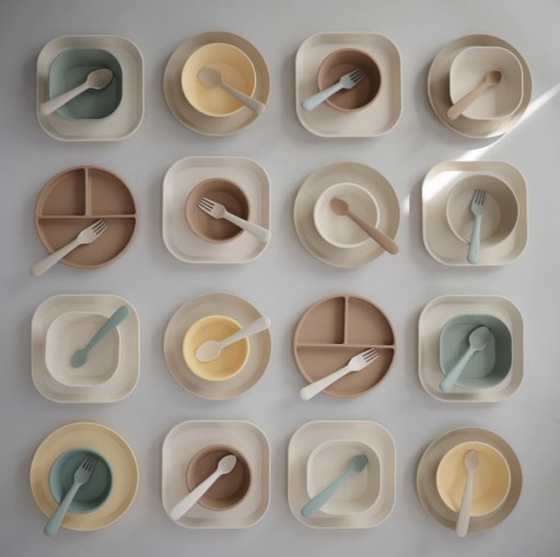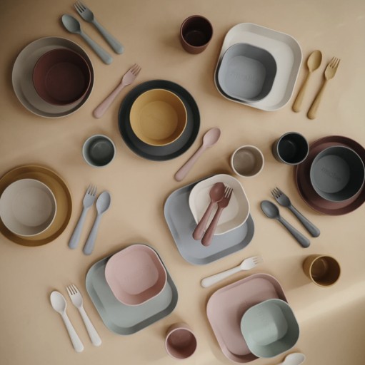 Skompletuj całą zastawę w pasującym kolorze i stylu, dodając pozostałe produkty Mushie