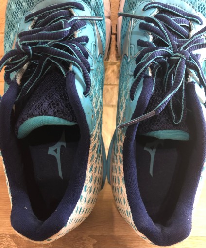 Detale: meshowa cholewka, kontrastowe elementy, logo Mizuno