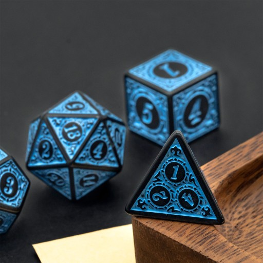 Komplet kości, czyli siedem wysokiej jakości kostek. Dzięki odpowiedniemu wyważeniu są bardzo wygodne w użyciu.